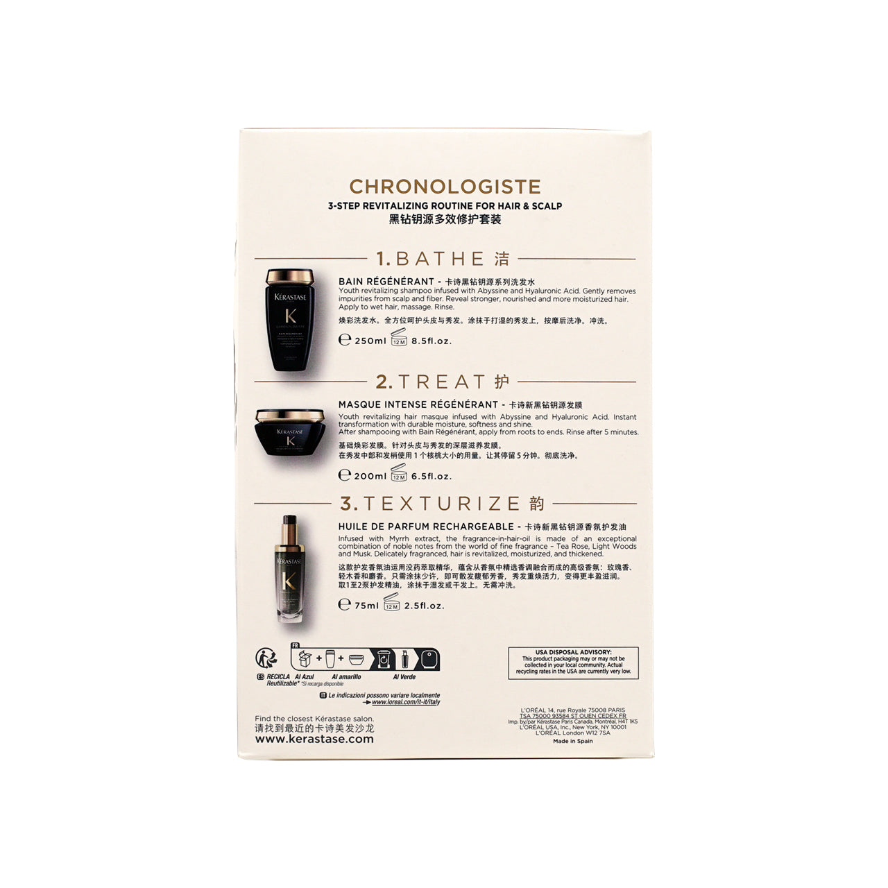 Includes the Chronologiste Ultimate Revitalizing Care series of shampoo, hair mask, and hair oil, intensely nourishing hair strands, caring for hair, selecting the perfect match, suitable for personal use or gifting.