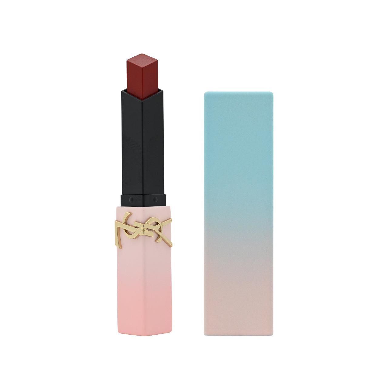 • Powder blue gradient tube design with a gold-tone embossed logo, creating a sweet Valentine's Day atmosphere while continuing the brand's high fashion aesthetic.